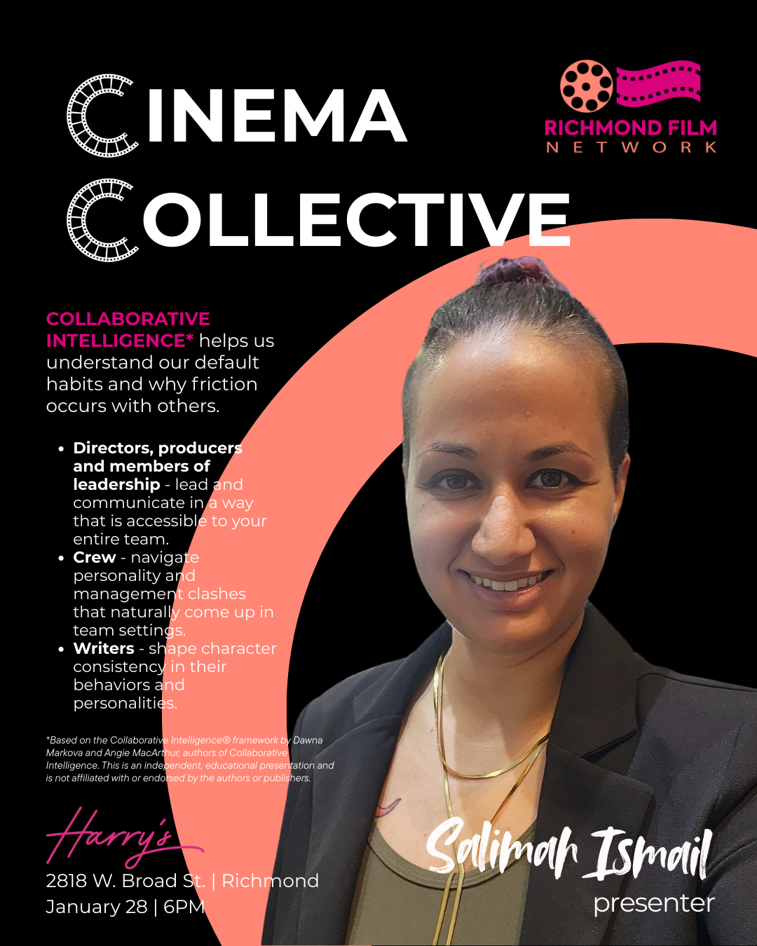 Cinema Collective is Richmond Film Network’s monthly workshop that is designed to bring together filmmakers and film-adjacent creatives across all disciplines—directors, writers, producers, editors, actors, composers, designers, and more. It’s a space to connect, exchange ideas, and spark meaningful collaborations in a structured yet welcoming environment.